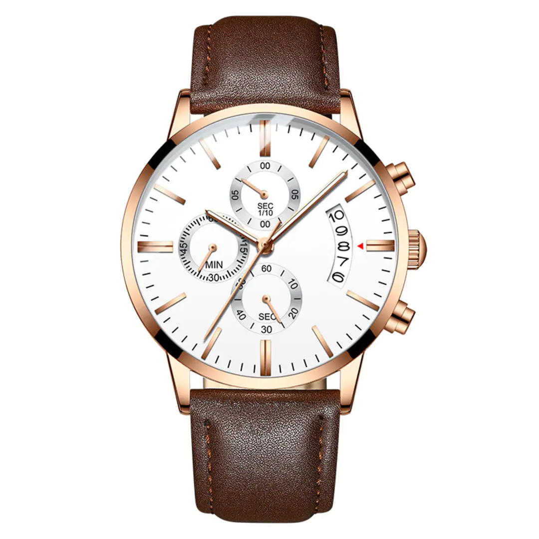Luminous, chronograph, calendar, countdown, small three-hand, week display